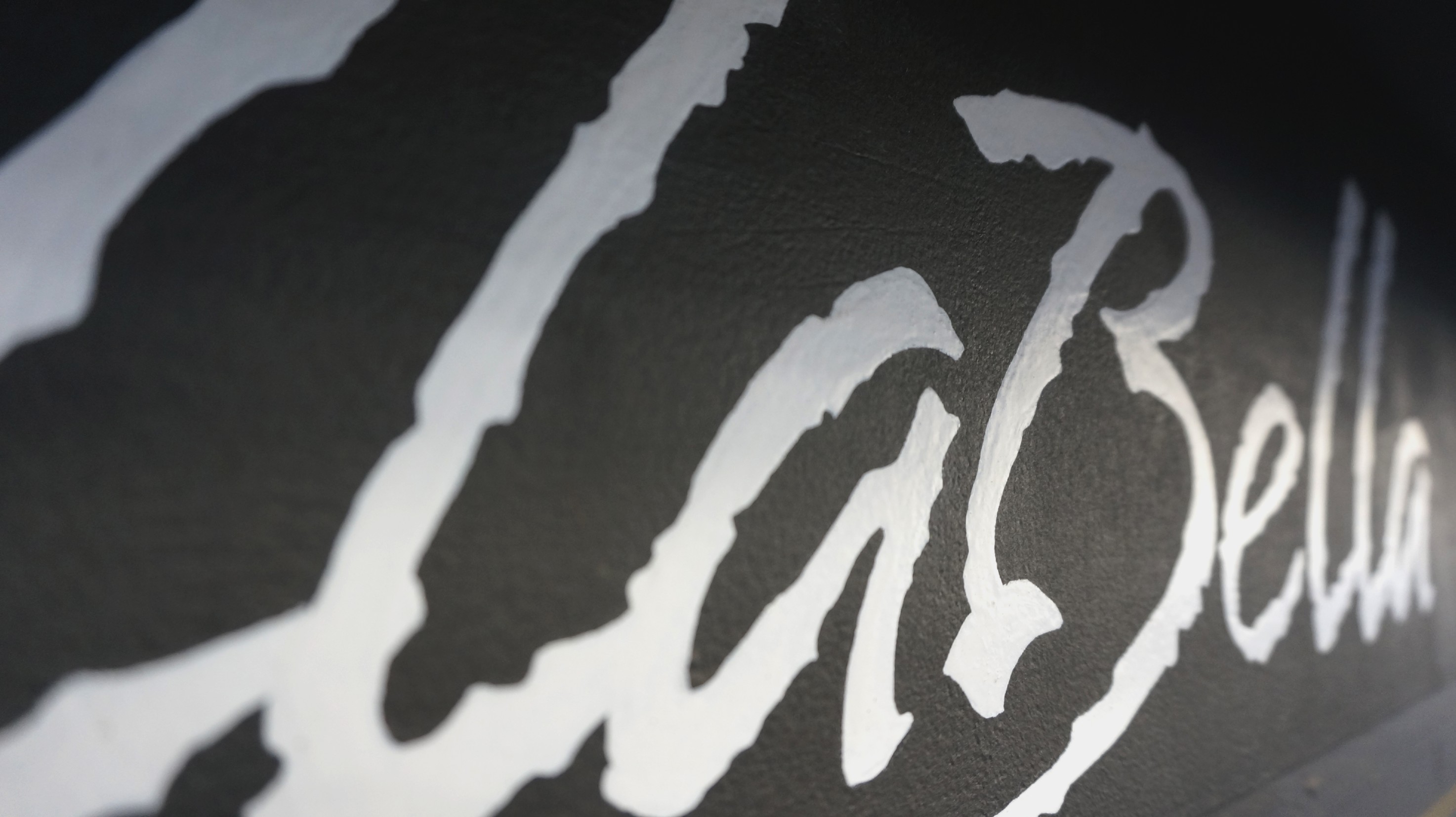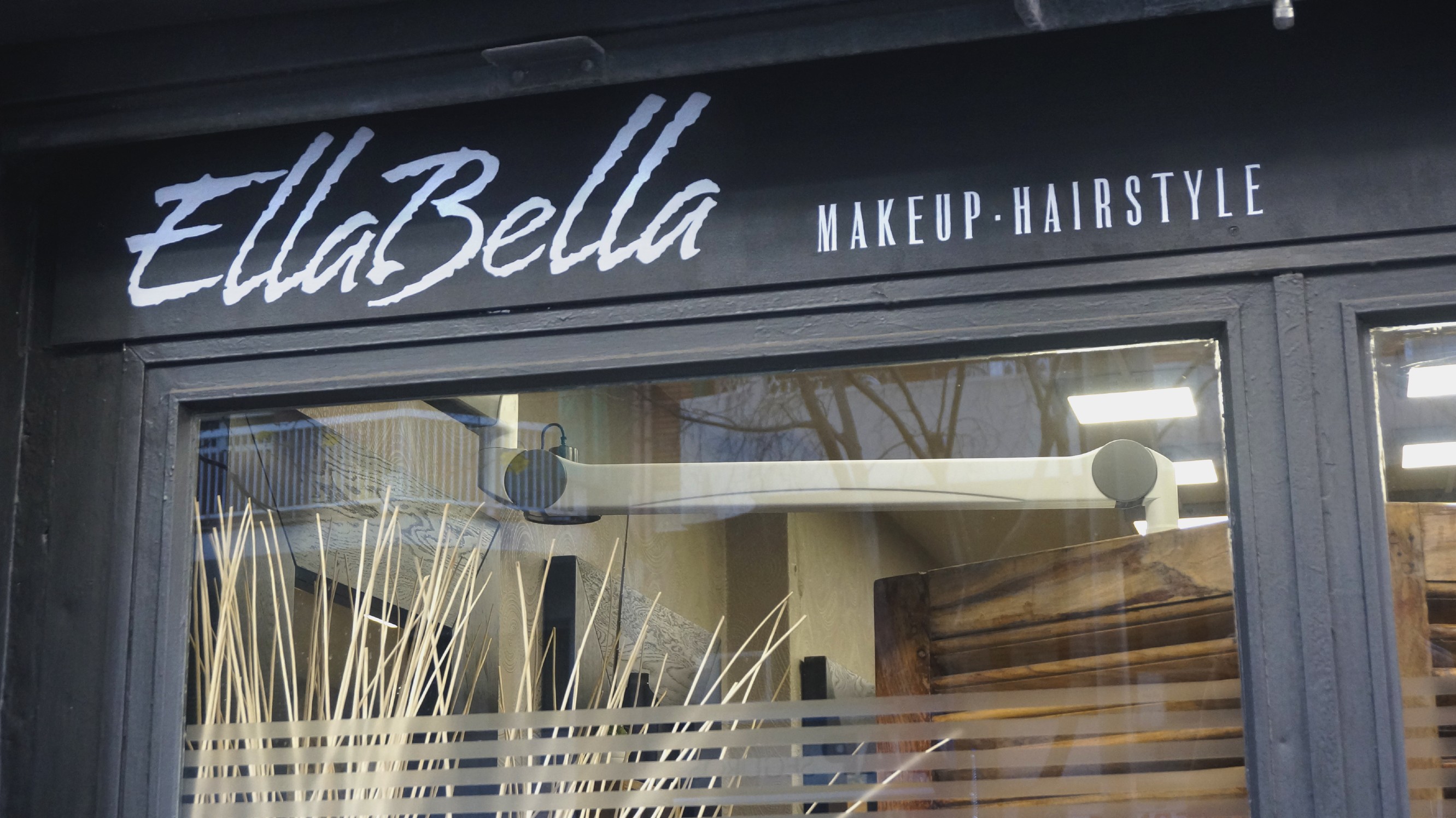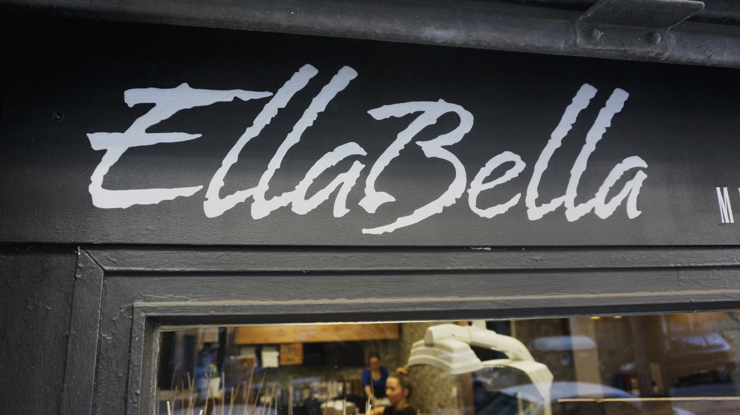 Rotulación tradicional a pnincel para la peluquería EllaBella, en Barcelona.