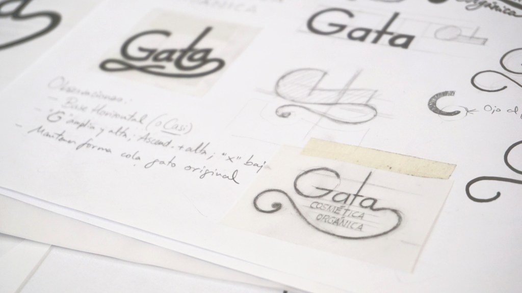 Como todos mis diseños, el logotipo de Gata es analógico en el 90% de su producción. Partiendo de esbozos a lápiz, se termina de perfilar en Procreate, para finalmente vectorizar en Illustrator manteniendo en lo máximo su vibración orgánica.