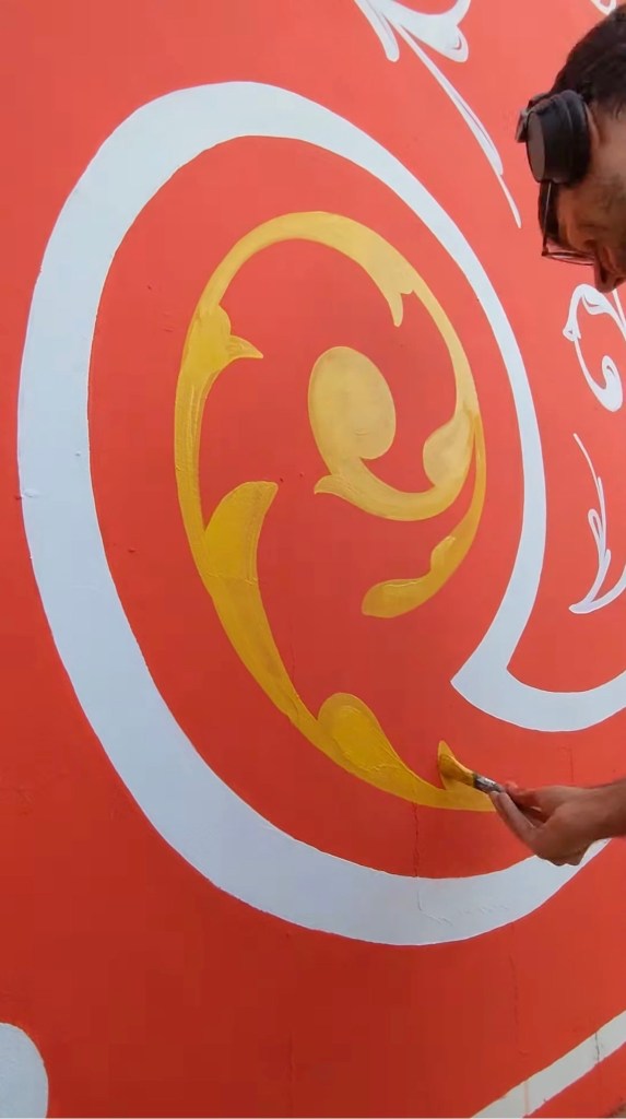 Rotulación tradicional con pan de oro para el bar Rita Dinamita, en San Telmo, Buenos Aires, Argentina.
